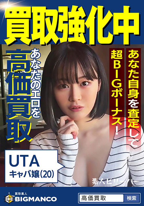 エロを買い取られた女たちあなた自身を査定して超BIGボーナスGET編。【買取素人#15】UTAさん・キャバ嬢美脚・美尻の美少女キャバ嬢の査定!甘えっぷり次第でボーナスGETなるか!?評価に値する積極的プレイ!高額査定間違いなしか!?積極的な子、濡れやすい子は査定UPの対象!感度が良すぎる子はさらにUP!感度の良すぎる素人美女のプライベートSEXをご鑑賞ください!!今宵あなたのエロを高価買取!